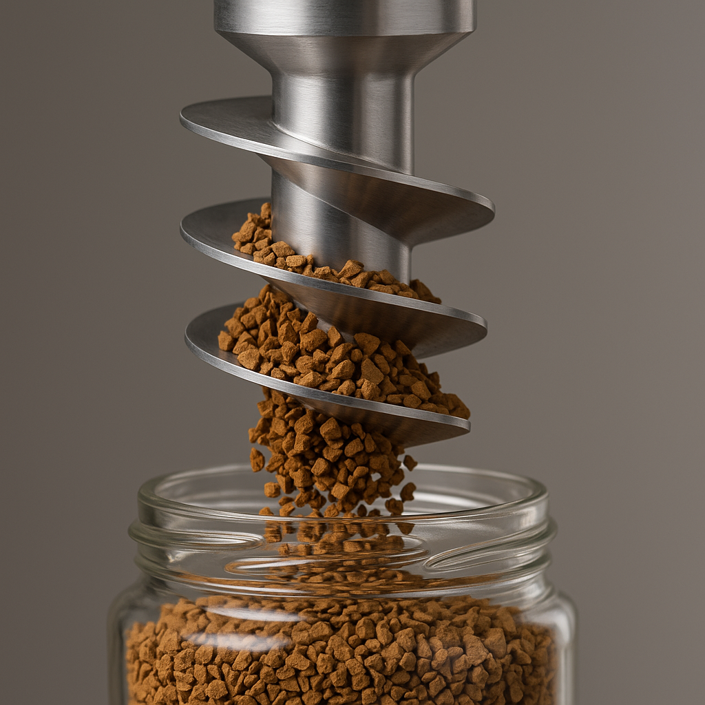 Sapli-Schneckenfüllsysteme sind speziell darauf ausgelegt, die Integrität empfindlicher gefriergetrockneter Kaffeegranulate zu bewahren. Dank unserer speziellen Materialien und unseres technischen Designs fließt der Kaffee sanft um die Spirale – ohne dabei zerdrückt oder belastet zu werden.